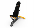 Спинку можно зафиксировать в 6-ти положениях — от 90 до 180 градусов. Фиксируется она при помощи упора на обратной стороне. Поменять положение легко, приподняв спинку и установив упор в нужном месте. Сиденье фиксируется в 5-ти положениях - от 158 до 180°. Благодаря конструкции с узкими передними ножками, упражнения наподобие жима гантелей выполнять ещё удобнее.