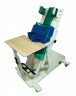 Опора для стояния – пронационная рама с регулируемым углом наклона от 45° до вертикального положения, поэтапно переводит пациента из наклонного положения лежа на животе в положение стоя. Имеет крепления для стоп, колен, тазобедренного и грудного отделов, мягкие съемные подлокотники. Крепления стоп регулируются по ширине, крепления колен по ширине и высоте, тазобедренного и грудного отделов – по высоте. Столик имеет взаимозаменяемую столешницу и таз для воды. Опора установлена на колесах, задняя пара колес имеет тормоза. Мягкие элементы на поролоне, обтянуты искусственной кожей. Изделие окрашено мебельным лаком.